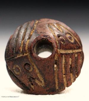 23) Ancient Pre Columbian Moche Indian Ceramic Spindle Whorl Bead Artifact