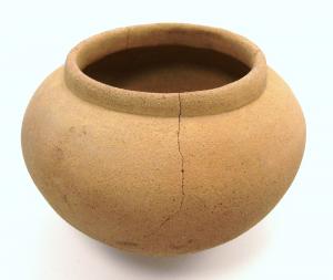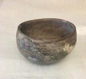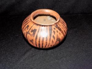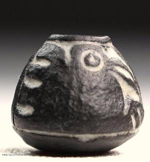 PRE-COLUMBIAN TERRACOTTA DECORATED FLARE LIP POT - CHIPPED - 3" #25