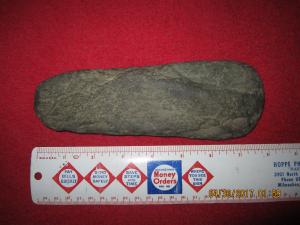 7 7/8" HARD STONE CELT OR SCRAPER ( " SHAGINAPPI SITE ", NEAR- PIPE, WISCONSIN )