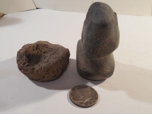 PRE COLUMBIAN TEOTI VESICULAR BASALT TEJOLOTE PESTLE W/ BICONICAL HANDLE TOOL