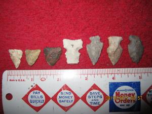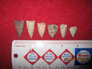 6 PERFECT ASSORTED ARROWHEADS ( " SHAGINAPPI SITE ", NEAR- PIPE, WISCONSIN )