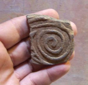 Pre Columbian Pottery shard. with Spiral pattern, Dug in Alabama - 300-800 AD