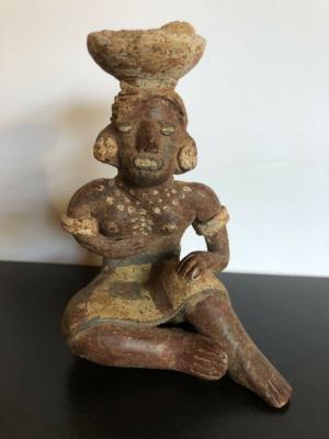 ANTIQUE PRE COLUMBIAN MAYAN POTTERY STATUE SEATED FIGURE