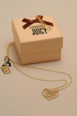 New with Tag NIB NWT Juicy Couture necklace goldplate crystal heart love pendant