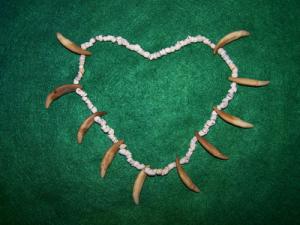 BEAUTIFUL HISTORIC SHELL BEADS with DRILLED CANINE TEETH NECKLACE