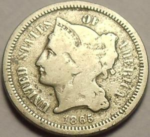 *ORIGINAL CIVIL WAR RELICS* **NICE *1865* **THREE CENT PIECE** *MUST SEE COIN!!!