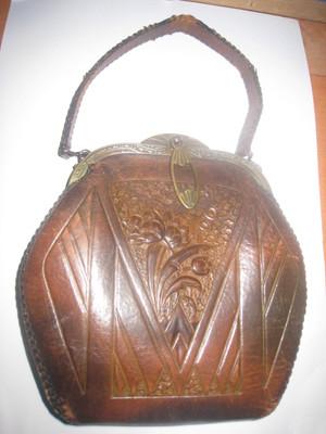 Antiques JUSTIN leather Co.tooled flowers purse