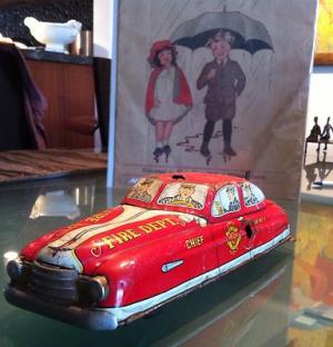 Tin Toy Car Lois Marx & co Fire Dept. 1940-s Made In USA