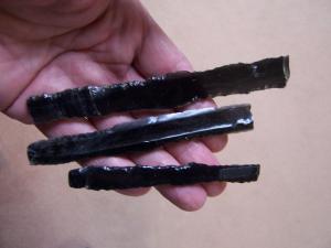 THREE LARGE AUTHENTIC PRE-COLUMBIAN OBSIDIAN LAMELLAR KNIVES