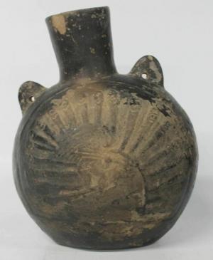 Antique Pre-Columbian Peru Moche Mayan Pottery Frog Stirrup Vessel