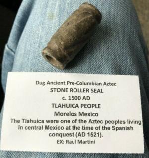 PRE COLUMBIAN POTTERY-OLMEC POTTERY SEAL-2.5in-MEXICO(1150-550bc)ROLLING SEAL#7