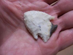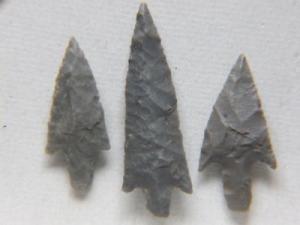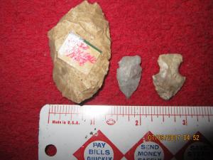 SMALL CHIPPED BLADE & 2 NOTCHED ARROWHEADS ( LITTLE GREEN LAKE, WISCONSIN )