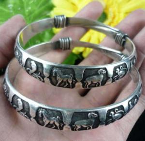 Carved Animals Two Match Tibet Silver Bracelet C7388