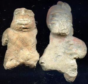 Pre-Columbian Two 2,400-2,100 yr.old Pre-Classic CLAY FIGURES