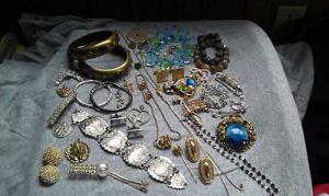 vintage estate jewelry lot earrings brooches necklace costume charms cufflinks