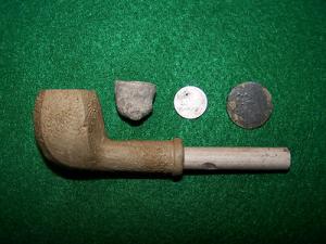 CS CONFEDERATE PERFECT CIVIL WAR PIPE with RELICS SILVER COIN CSA AUTHENTIC