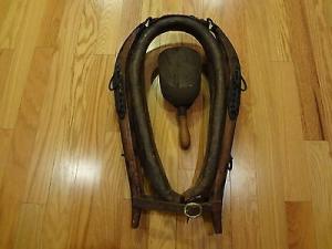 Vintage Leather Horse / Mule Collar Yoke Wooden Metal Harness and Feed Scoop