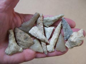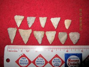 LOT OF 11 ASSORTED MATERIALS TRIANGULAR ARROWHEADS ( DOUSMAN, WISCONSIN )