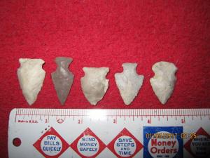 LOT OF 5 ASSORTED STYLE ARROWHEADS ( NEAR BENTON HARBOR, MICHIGAN, BERRIEN Co. )