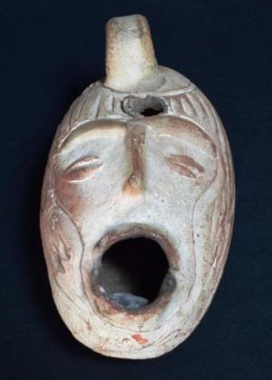 Unusual Pre-Columbian Style Head Shaped Pottery Oil Lamp