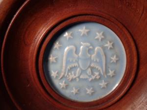 ANTIQUE **AMERICAN EAGLE & STARS** ART POTTERY PLATE BLUE & WHITE