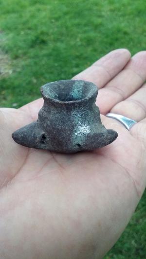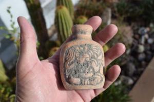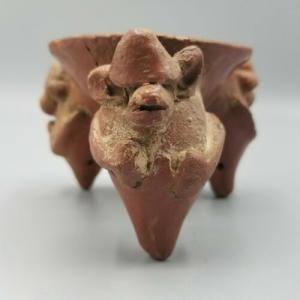 Pre-Columbian Pottery mini-Jar, animal head, plate, Ancient Artifact