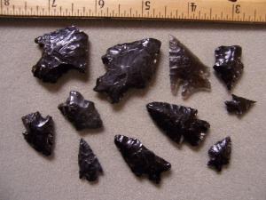 ELEVEN AUTHENTIC OBSIDIAN POINTS FROM THE OLD L.L.COOKE COLLECTION