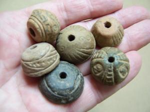 Pre-Columbian Clay Spindle Whorl Beads, Central American Clay Beads