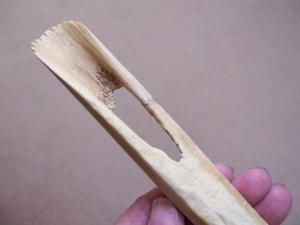 AUTHENTIC CIRCA 1800 ARIKARA POLISHED BISON BONE FLESHING TOOL