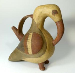 REPRO Pre Columbian Pottery Nazca Polychrome Bird Effigy Spout Vessel
