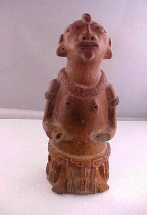 a beautiful small piece of a character,precolumbian,moche,mochica