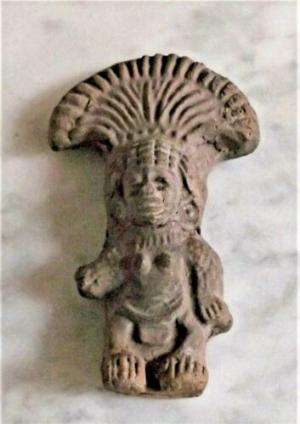 Maya (maybe) Pre Columbian Clay Figure Elaborate Headdress Restored 3 1/2" x 3"