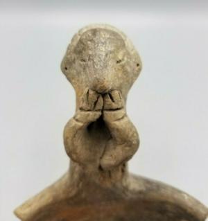 OLD PRIMITIVE 5" CLAY POTTERY FIGURE I DONT KNOW THE ORIGIN?