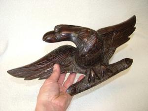 18" ANTIQUE CARVED WOODEN AMERICAN EAGLE - PRIMITIVE ART
