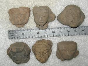 6 Teotihuacan Clay Pre Columbian Idol heads Mexico Mayan 100 BC-800 AD Artifacts