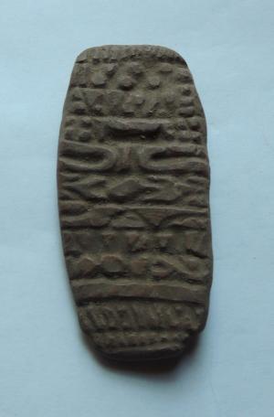 ANTIQUE STONE WRITING-FOSSIL?PRE COLUMBIAN POTTERY-OLMEC-MEXICO ARTIFAC-3in-NR