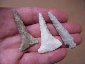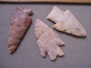 THREE AUTHENTIC CHERT PROJECTILE POINTS FROM THE JIM BUSSEY COLLECTION