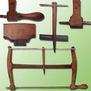 ANTIQUE BOW SAW WITH 17 1/2" LONG BY 1/4"WIDE BLADE STAMPED WITH MAKERS NAME
