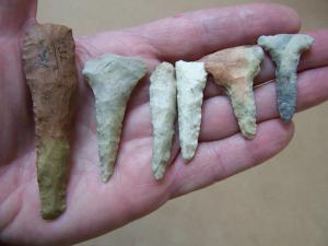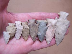 SIX AUTHENTIC CHERT POINTS FOUND BY AUGIE MEIR, BATAVIA TWP. KANE CO, ILLINOIS
