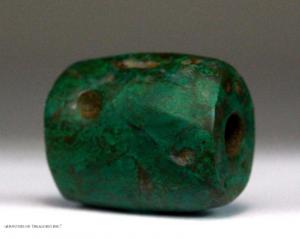 17) Ancient Pre Columbian Chimu or Moche Greenstone Mosaic Turquoise Melon Bead