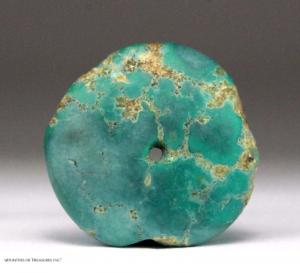 47) Ancient Pre Columbian Moche or Chimu Mosaic Turquoise Stone Disc Bead 17 mm