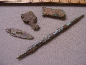 FOUR AUTHENTIC OLD COPPER CULTURE ARTIFACTS FROM THE GORDON MORRIS COLLECTION