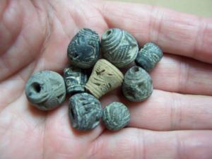 Pre-Columbian Carved Stone Beads Collection of 5, Authentic Mayan Beads