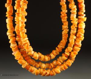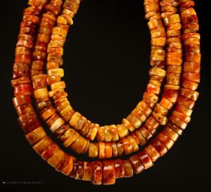 184) Ancient Pre Columbian Moche or Chimu Light Orange Spondyllus Bead Necklace