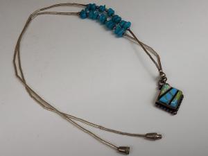 VTG Sterling Silver Turquoise Southwest Native American Pendant Necklace Signed
