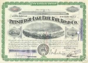 Old Pittsburgh & Lake Erie Railroad stock certificate authentic w/ city vignette
