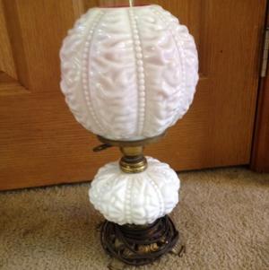 LG Wright Milk White Pink Lamp Beaded Melon Electric Full Size Great Condition