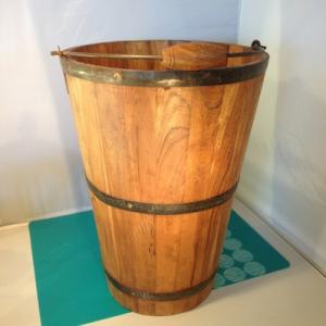 Large Tall Vintage Wood Wooden Well Water Bucket Wrought Iron Rings Apple Pail