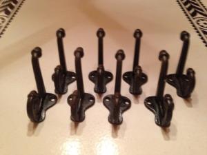 Eight Heavy Cast Iron Antique Two Prong Acorn Head Coat Hooks