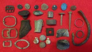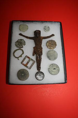 Detector Finds: Buttons, Coin, Crucifix Cristo - Spanish Colonial - Florida Dug